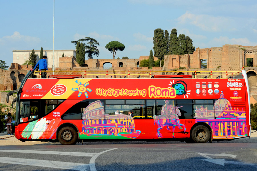 City Sightseeing Rome Bus Tours are quite famous because you have them in most all European cities! In Italy the City Sightseeing bus is present in Florence, Milan, Naples, Palermo, Torino, Verona and many more! In fact, if you show a recent bought ticket to the staff in any of the other tours Worldwide, you’ll automatically get a 10% discount on the ticket you’re buying! When you hop-on, you’ll get disposable ear phones so you’ll have the chance to listen to informative commentary in eight different languages; Italian, English, French, German, Spanish, Chinese, Japanese and Russian, while passing by famous monuments.
