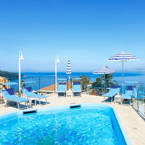 Grand Hotel De La Ville Sorrento has two pools. The main pool is enclosed in a shady courtyard. The pool on the roof terrace is slightly on the small side, yet the view is amazing.
