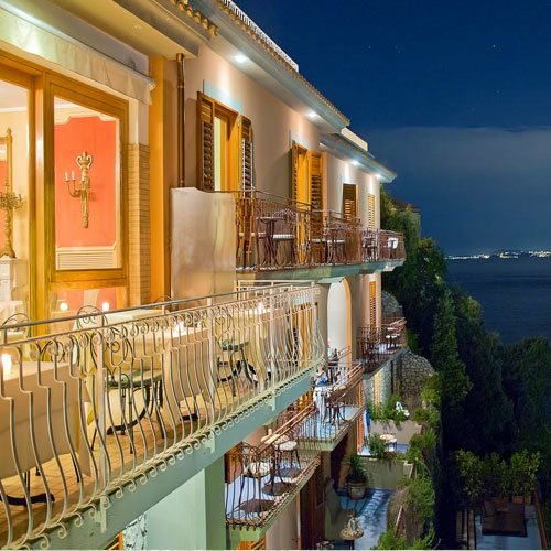 Hotel Belair Sorrento is nestled into the cliff side with views overlooking the Bay of Naples and Mount Vesuvius. It’s situated on the South side of Sorrento. It’s in a convenient location. Just about a ten to fifteen minute walk downhill to the Sorrento shopping and restaurant area. Just think, the walk will keep you fit and also allows you to enjoy the many Italian cuisines with a lot less guilt.