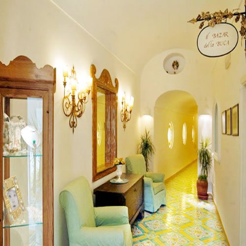 Hotel Buca di Bacco Positano is ideally situated in Positano overlooking the beach. The location can’t been more beautiful. It is right in the heart of town where all the shops and restaurants are. It is just a few steps from the beach and also central to the pier. Very convenient if you plan to take a boat ride to the other Amalfi Coast stops; Capri, Amalfi, etc. Remember, Positano is in a mountain. So keep in mind when booking this hotel. It’s a long walk up a vertical climb, which consists of cobble stone and steps. Even getting to the main road that is half way up is a workout. Be advised, the hotel is situated in the pedestrian only part of Positano. You either need to be prepared to call for a porter, or carry the bags down many stairs and then to the lobby.