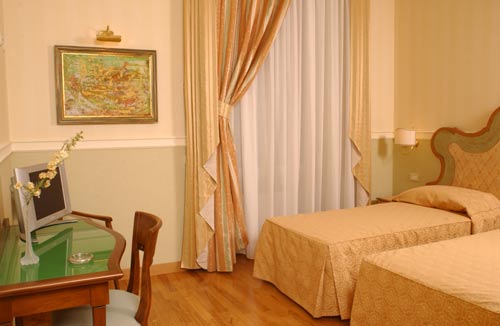 This charming little bed and breakfast has romantic decorated rooms. The rooms are sound-proof which means no noise from the streets or from other guests. Not only does every room have their own bathroom equipped with a shower and blow-dryer but each room has a phone and internet connection. The bad news is that this hotel charges their clients for the internet connection. Air-conditioning will keep you cool during the roman summer! When it gets to hot you can just take out a drink from the mini-bar. No smoking is allowed in all areas. Should you come to town with your car; Il Gattopardo Relais will find you an arrangement with a garage nearby against a fee.
