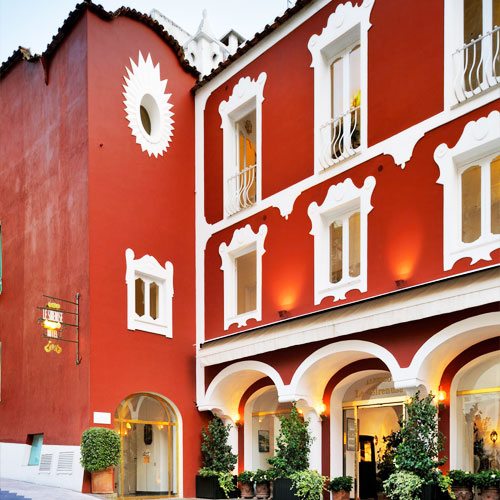 Le Sirenuse Hotel Positano is situated above the beach in Positano, along the scenic Amalfi Coast. It is perfectly located just a little ways up the hill. With beautiful views of the ocean and hillside, the tiled church dome and the gleaming sea.