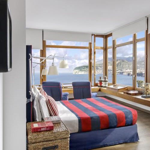 Maison La Minervetta Hotel Sorrento is elegantly decorated in a nouveau nautical-theme. They feature 12 air-conditioned rooms that are beautifully decorated and well appointed. Each room has a floor-to-ceiling window that offers picture-perfect views of the Mediterranean Sea. They are all equipped with Satellite TV, minibar and safe. Some of the rooms come with a balcony. Bathrooms come with shower/tub combinations (handheld shower-head). Hair dryer and complimentary toiletries are also included. Free Wi-Fi in public areas only. The hotel has one junior suite. It has two balconies, and an amazing large walk-in hydro massage shower.