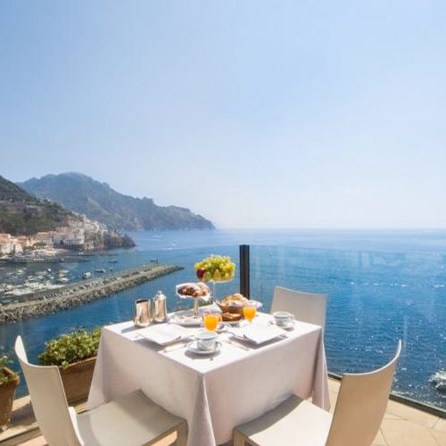 The restaurant serves traditional Campania cuisine. Great food and service. The view from the dining room is truly exceptional looking at Amalfi and the ocean. Breakfast is complimentary, and served in the same dining room. They have a large and diverse spread of foods to cater for all tastes.