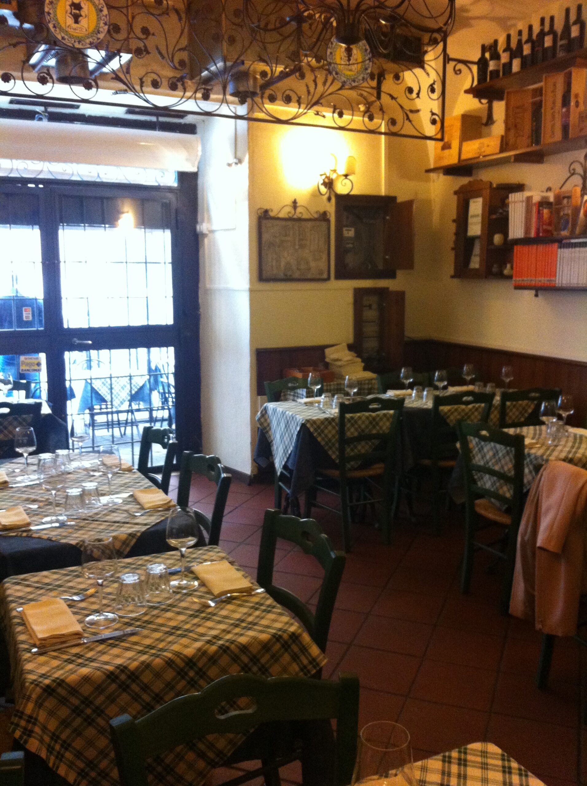 Ponte e Parione is open every day of the year starting from 12 noon until late at night. Seating is available inside with air-conditioning in the summer and outside on a beautiful street next to another famous church called Santa Maria dell’Anima. You’ll be eating outside in an open museum, staring at romantic little street ways and flower decorations. Inside, the walls are semi covered with dark wooden panels and the table settings and the chairs are all kept in a greenish color. It sort of reminds you somehow of sitting in a garden, even if you’re sitting inside.