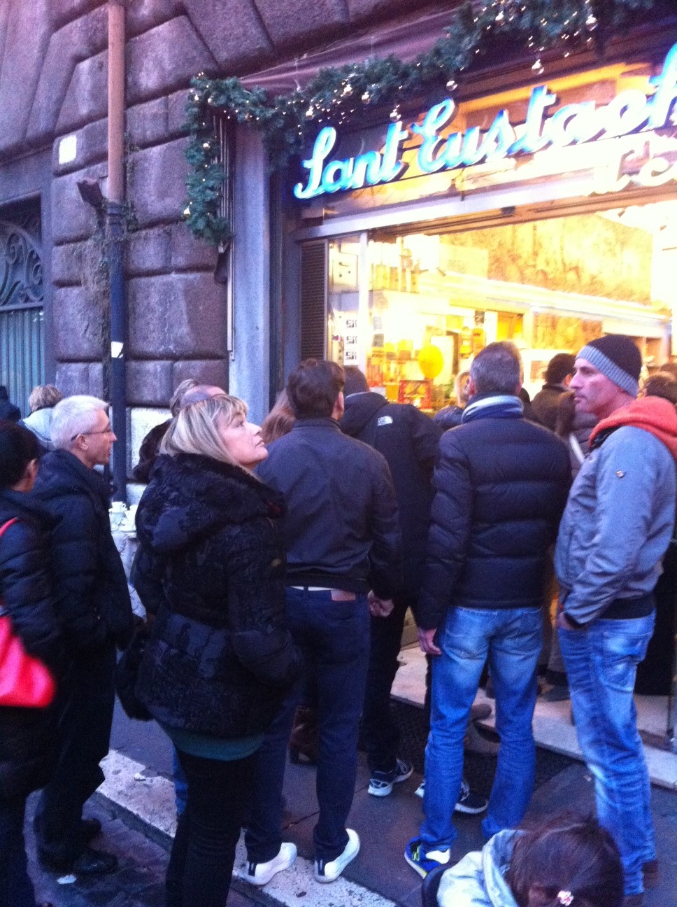 Sant Eustachio il Caffe Rome is open until one o’clock in the morning, so sooner or later you’ll get your chance. The first thing you have to do when walking inside is go to the cashier and pay for what you have decided to take. Things go pretty fast so it’s better if you know exactly what to order. You’ll get your receipt and with that you might have to elbow yourself through to the counter. When you come to these coffee places, it would be good to leave around 20 cents on the counter when placing your order, together with your receipt. The prices vary, it’s cheaper to have your food and drinks at the counter and not at the table.