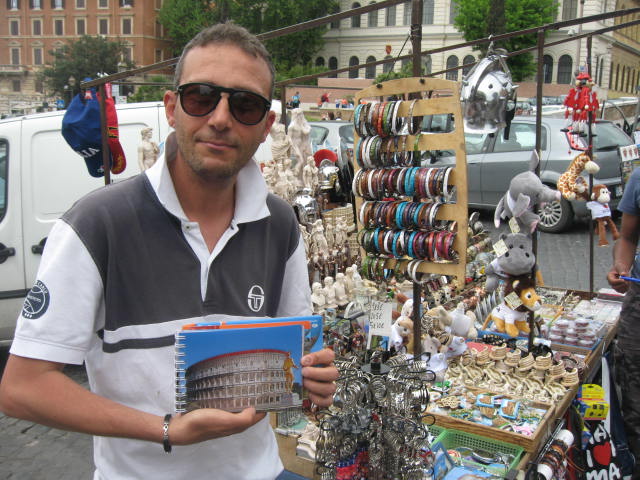 On the top of the steps, towards the hop on –hop off bus walking away from the Colosseum, Roberto a friendly Roman souvenir stand owner stopped me and asked if I’d like to see how the Colosseum used to look like in the old days…have a look at the picture I posted and you can see for yourself the big difference! By the way you can buy this booklet…