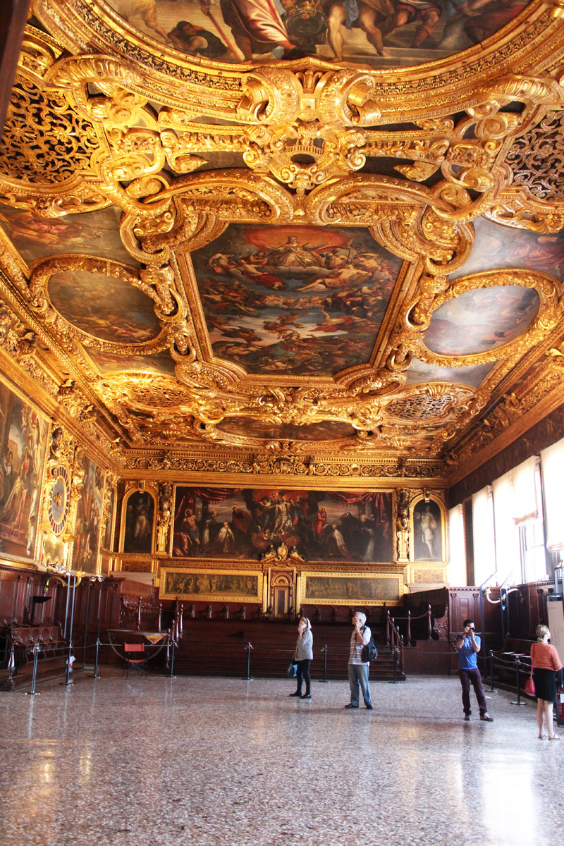 Some of the beautiful rooms you’ll see as you enter the building are the Stucchi rooms. Here, paintings by Venice’s best artists like Tintoretto, Titian and Veronese decorate every corner. After this, you’ll see the ground council chamber where pictures of the past doges are displayed throughout the room. Try to look for the empty space where Marino Falerio should have been—he was executed for plotting to start a coup.